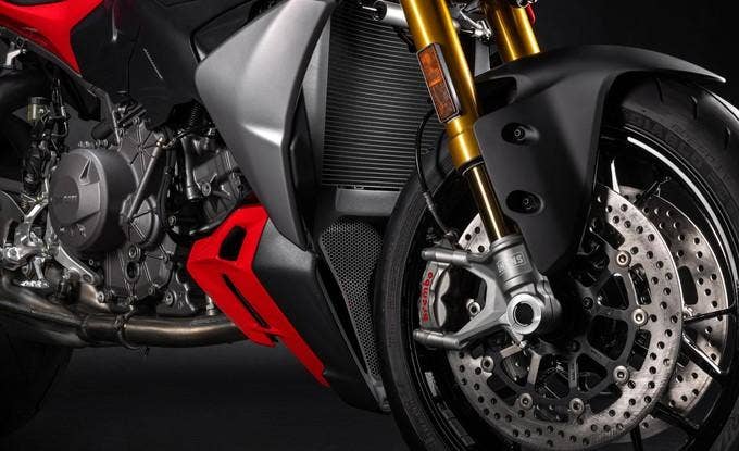 Plně nastavitelné odpružení: Streetfighter V2 je vybaven plně nastavitelnou 43mm vidlicí Marzocchi vpředu a tlumičem Kayaba vzadu. Se 43mm vidlicí Öhlins NIX30 a tlumičem Öhlins nabízí Streetfighter V2 S pokročilé přizpůsobení a bezkonkurenční pocit z jízdy. Oba modely jsou vybaveny tlumičem řízení Sachs.